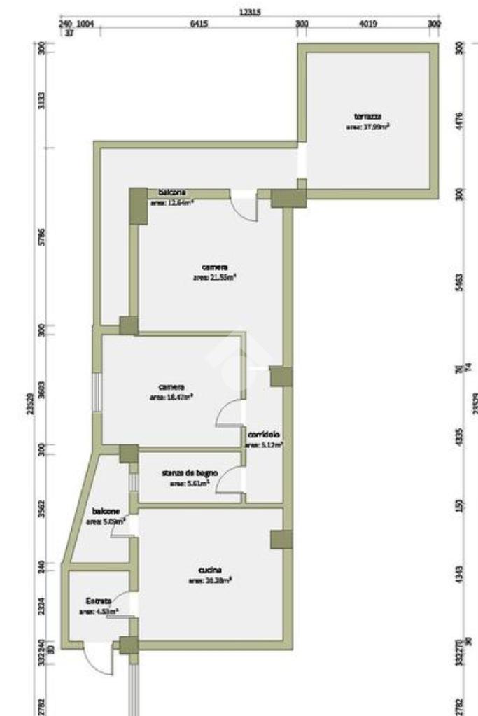 L'immobile è composto da tre locali ben distribuiti: due camere da letto, un bagno e soggiorno-cucina. Come pertinenze dell'immobile abbiamo un balcone angolare che sfocia in un ampio terrazzo, che non solo offre la possibilità di sfruttarlo in molteplici modi ma offre anche un secondo ingresso all'abitazione direttamente dal retro del condominio. Uno dei punti di forza di questa proprietà è proprio l'ampio terrazzo a livello, ideale per momenti di relax all'aperto.