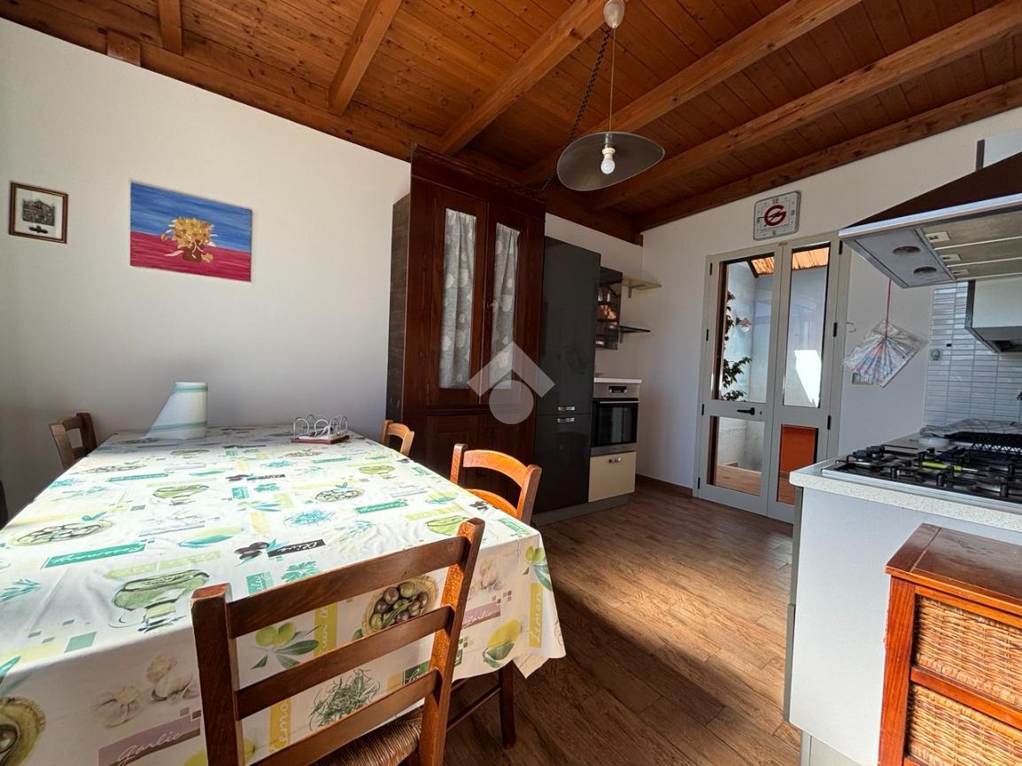 La casa si sviluppa tutta al primo piano e si apre su una cucina abitabile molto funzionale che conduce a un soggiorno luminoso dotato di camino, creando un ambiente conviviale e ben organizzato. La zona notte offren due ampie camere da letto entrambe matrimoniali che assicurano la massima comodità per la famiglia o per gli ospiti, completate da un bagno ben rifinito e da un indispensabile ripostiglio.